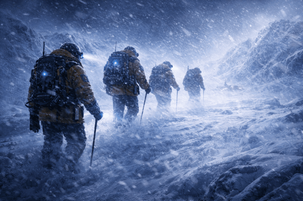 Noch auf dem Weg dorthin müssen sie es mit Schneestürmen und tiefen Schluchten aufnehmen.